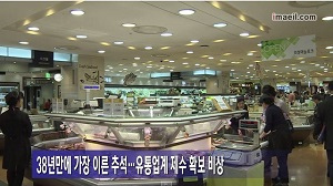 올해 추석은 9월 8일로 1976년 이후 38년 만에 가장 이르기 때문에 물량 부족으로 햇과일 등 제수가격이 뛰거나 품귀현상이 빚어질 수 있다는 전망이 나옵니다.