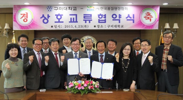 구미대학교(총장 정창주)와 한국품질명장협회(회장 형형우)는 23일 우수인재 양성을 위한 상호교류 협약을 맺고 기술 정보 제공과 공동연구 등을 약속했다.