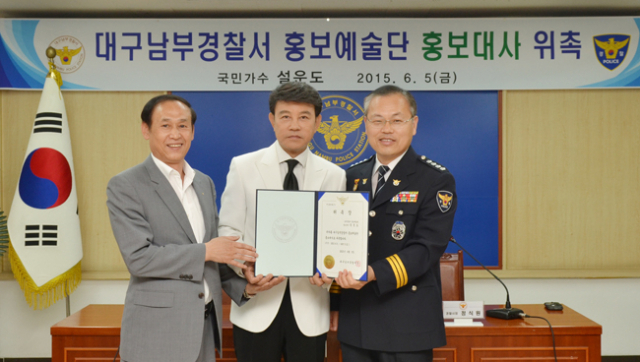 대구남부경찰서(서장 정식원)는 최근 경찰서 2층 소회의실에서 가수 설운도 씨를 남부경찰서 홍보예술단 및 4대 사회악 근절 홍보대사로 위촉했다.