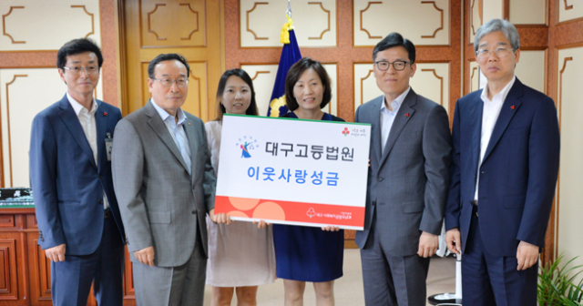 우성만 대구고법원장은 9일 대구사회복지공동모금회(회장 함인석)에 이웃돕기 성금 160만원을 전달했다. 성금은 지난달 29일 법원 여직원회가 주관한 벼룩시장 수익금 등으로 마련했다.