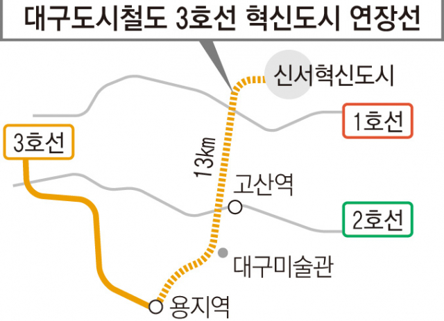 대구시 관계자는 "3호선이 연장되면 대구 신성장동력의 축인 혁신도시와 첨단의료복합단지, 수성의료지구를 연결할 수 있어 경제적 시너지 효과가 기대되며 1'2호선과 교차하게 돼 환승 효과도 누릴 수 있다"고 말했다.