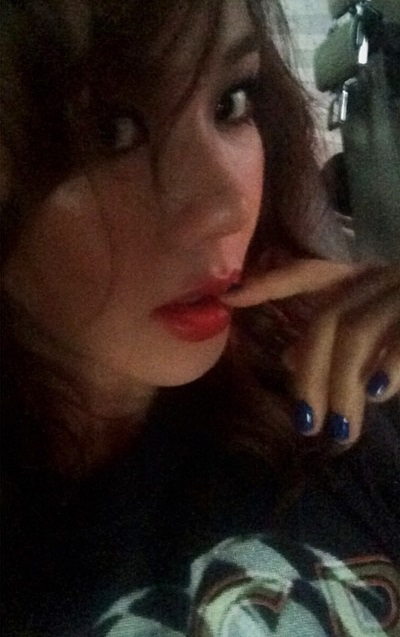 공개된 사진 속 엄정화는 진한 메이크업을 하고 손가락을 살짝 문 표정으로 카메라를 응시하고 있다.