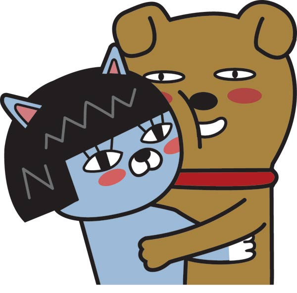 ▶새침하고 사나운 고양이는 네오(Neo)입니다.(제 여친이죠) 파란 얼굴에 검은 단발머리가 매력 포인트죠. 호기심 많은 장난꾸러기 무지(Muzi)는 토끼 옷을 입고 있지만 사실은 단무지랍니다. 노란 몸을 보면 바로 알 수 있죠. 무지와 단짝인 콘(Con)은 작은 악어입니다. 신비주의 캐릭터를 설정해서 항상 옆모습만 보여주죠. 유전자 변형으로 자웅동체(雌雄同體)가 된 복숭아 어피치(Apeach)는 개구쟁이 캐릭터로 사춘기 10대들의 특징을 잘 보여주고 있어요. 튜브(Tube)는 소심한 오리 이미지로 공포를 느끼면 미친 오리로 변한다는 설정을 하고 있죠. 제이지(Jay-G)는 땅속 나라 요원 두더지로 토끼 간을 찾기 위해 파견된 비밀요원입니다. 그리고 저는 부잣집 도시 개 콘셉트를 하고 있어요. 디즈니 만화의 플루토 기억나시죠? 이미지도 비슷하고 이름도 거기서 따왔답니다.