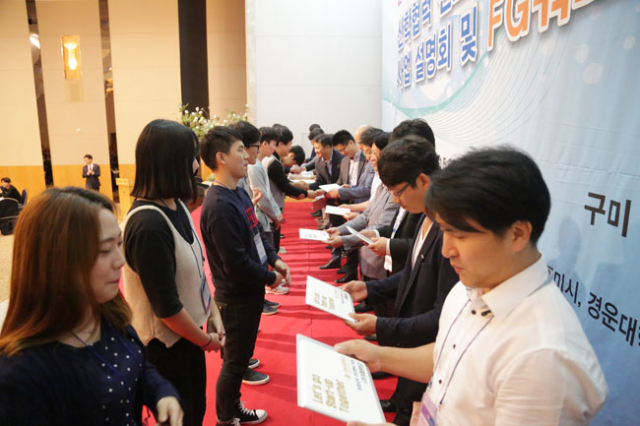 경운대(총장 장주석) 산학협력선도대학사업단은 최근 구미 금오산호텔에서 기업체 대표 등 300여 명이 참가한 가운데 산학협력선도대학 사업설명회 및 가족회사(FG) 워크숍을 열었다. 또 학생·기업멘토가 창업활동을 하는 '렛츠 고 스타트 업 투게더' 협약식 및 멘토기업 현판 수여식도 진행했다.
