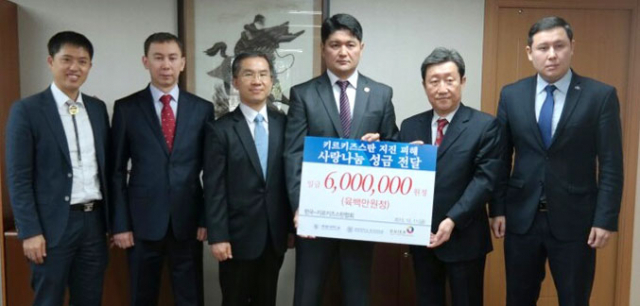 대구경북국제교류협의회(공동의장 권영진·김관용·신일희)와 한국-키르기스스탄협회(회장 차순도)는 11일 주한 키르기스스탄 대사관을 방문해 지진 피해를 입은 키르기스스탄에 복구 성금 600만원을 전달했다. 키르기스스탄은 지난달 18일 굴차 지역에 규모 5.5의 지진이 발생해 큰 피해를 입었다.