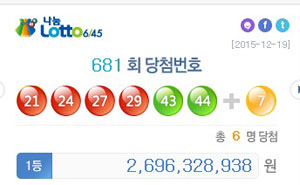 나눔로또는 19일 추첨된 로또복권 제681회 1등 당첨자 복권 구입방식이 자동 6명이라고 공개했다.