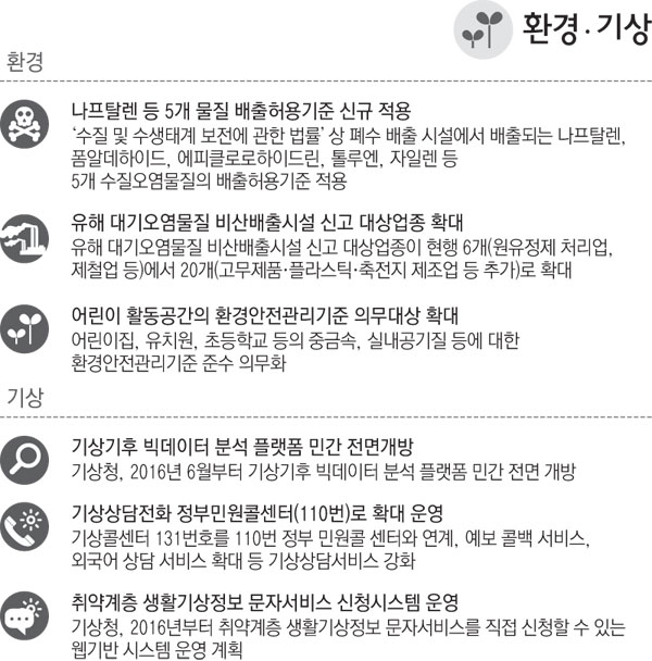 내년부터는 적설하중에 취약한 공업화 박판강 구조(PEB) 및 아치 패널 건축물의 관리자에게 지붕 제설 작업을 의무화하고, 민간 소유 다중이용시설의 소유자'관리자 또는 점유자가 위기 상황에 대비한 매뉴얼 작성'관리 및 훈련을 해야 한다. 또 의약품 부작용으로 장애가 발생하면 소송 없이 보상금을 받을 수 있는 길이 열리고, 양식수산물재해보험 보장이 확대되며 어업인안전보험도 출시된다. 하반기부턴 각종 신분증명서에 이혼경력 등 민감한 개인정보가 노출되지 않도록 가족관계등록부 공시 제도가 개선되고, 남성 육아휴직 활성화를 위해 육아휴직급여를 현재 1개월에서 3개월로 확대된다.