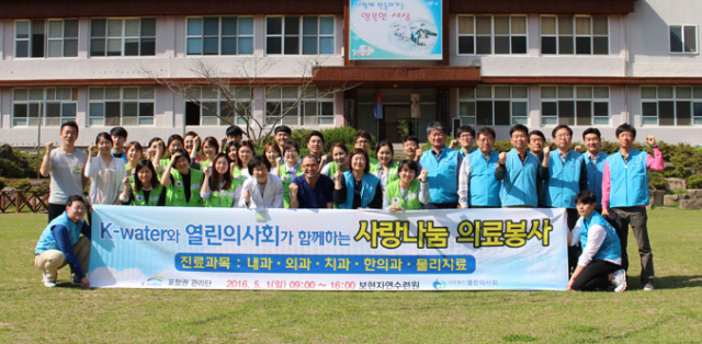 K-water 포항권관리단(단장 박병돈)은 1일 영천 자양면 보현자연수련원에서 의료혜택을 받기 어려운 주민을 대상으로 내과, 외과, 치과와 한방 진료를 제공하는 등 '2016 사랑나눔 무료 의료봉사'를 실시했다.
