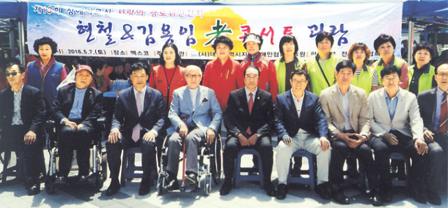 대구지체장애인협회(회장 김창환)는 7일 엑스코 광장에서 8개 지부장과 함께 장애 어르신 800명을 초청, 현철'김용임 효 콘서트를 함께 관람하고 어르신들에게 음식을 대접했다.