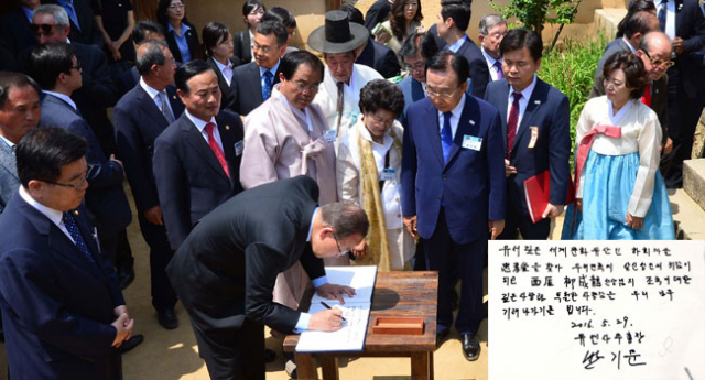 김관용 도지사는 "가장 한국적이면서 세계유산인 하회마을을 찾아주신데 대해 감사 드린다"고 인사했다.