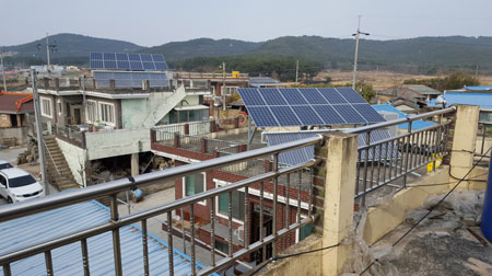 도시가스 등이 공급되지 않는 에너지 소외 농어촌지역을 대상으로 신재생에너지 융'복합단지 시설을 우선 지원, 에너지 비용의 부담을 덜어 주는 계기가 마련됐다. 사진은 주택에 만들어진 태양광 발전 설비다.