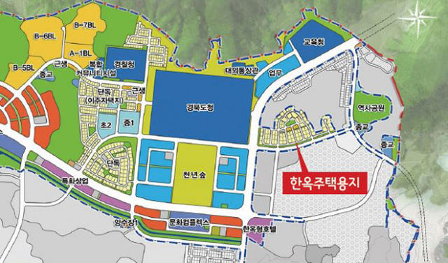 경상북도는 새천년 도읍지를 역사와 전통문화가 살아 숨 쉬는 명품도시로 조성하고 한국적 이미지를 담은 정감 있는 도시로 만들기 위해 신도시 내 한옥마을 조성을 추진중이다.