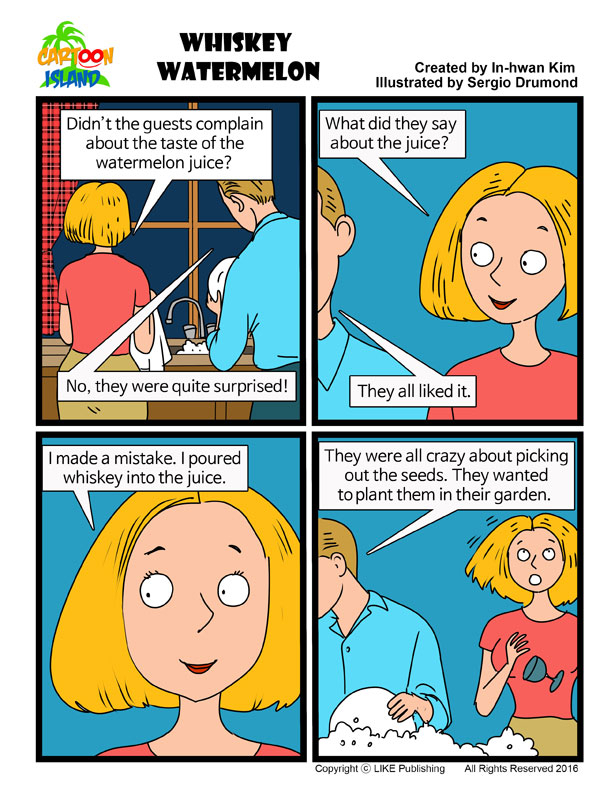 낸시: 실수를 했어요. 주스에 위스키를 부어버렸지 뭐예요.