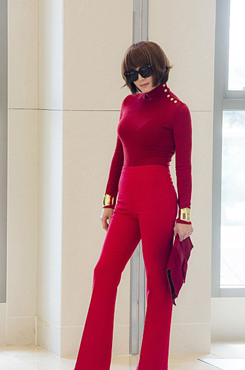 김혜수는 상의와 하의 모두 빨강색으로 일치시킨 채 검은 색 선글라스를 착용해 범상치 않은 패션을 선보여 많은 이들의 시선을 사로잡았다.