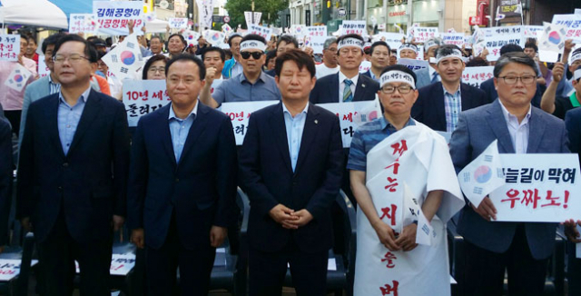 정부의 김해공항 확장안 발표에 항의하는 '남부권신공항 백지화 진상규명 촉구대회'가 25일 대구 중구 동성로에서 열렸다.