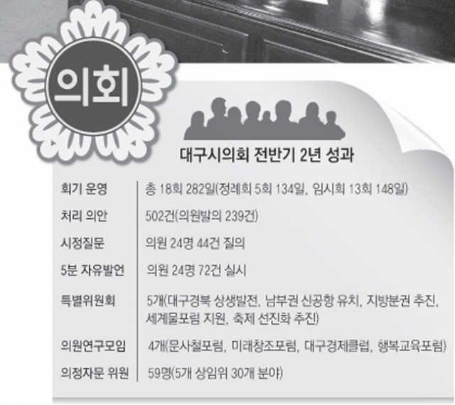 제7대 대구시의회(이동희 의장)가 30일 제242회 정례회 제5차 본회의를 마지막으로 전반기 2년간의 의정활동을 마무리한다.