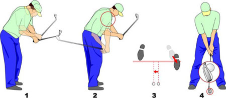 공과 몸이 가까이 있는 상태에서 백스윙을 타깃 라인의 아웃사이드로 해주면 임팩트 때 거의 생크로 이어진다. 백스윙을 타깃 라인 안쪽으로 했더라도 다운스윙 때 타깃 라인 바깥쪽에서 시작하며 오른쪽 어깨가 먼저 움직이면서 볼을 덮어칠 경우 발생하는 슬라이스 샷과 유사한 것 역시 생크 샷이다.