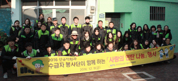 국민연금공단 신규 직원과 수급자봉사단은 함께 비산2'3동 내 연탄보일러를 사용하고 있는 저소득 취약 계층 여섯 가구에 직접 연탄 배달 봉사를 하며 의미 있는 시간을 가졌다. 이후 나머지 가구는 '사랑의 연탄나눔'운동본부 대구'경북 자원봉사단이 전달할 예정이다. 김용기 본부장은 "이번 연탄나눔 봉사가 연탄을 땔 때 채워지는 방 안의 온기처럼, 소외 계층의 마음속에도 따뜻함으로 가득 채워지길 기대한다. 올해 신규 직원, 수급자봉사단과 함께 땀 흘리며 연탄 배달을 하며 나눈 온정의 손길이 이웃사랑과 나눔 문화를 확산시키는 계기가 되었으면 한다"고 했다.