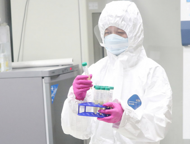 경기도 포천시의 한 가정집에서 폐사한 채로 발견된 고양이 2마리가 H5N6형 고병원성 조류인플루엔자(AI)에 걸린 것으로 최종 확인되며 인체 감염 우려가 커지고 있는 1일 오후 경기도 수원시 권선구 경기도동물위생시험소에서 연구원이 AI바이러스 항원검사를 하고 있다. 2017.1.1 연합뉴스