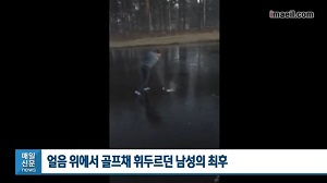 더욱 안타까운 건 몸이 떨어진 충격으로 골프 연못의 얼음이 깨져 그대로 차가운 물에 풍덩하는 장면을 연출 하고 맙니다.