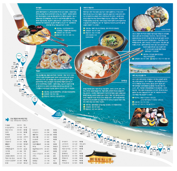 영일대 북쪽은 '설머리 물회 외식업지구'다. 2015년 정부의 우수 외식업지구에 선정됐으며, 여느 바닷가처럼 횟집들이 옹기종기 모여 있다. 20여 곳의 횟집은 해안로를 따라 환호공원까지 쭉 이어진다. 설머리라는 지명은 백사장 모래가 마치 하얀 눈에 덮여 있는 것처럼 보인다고 해서 신라 때부터 불려온다고 한다.