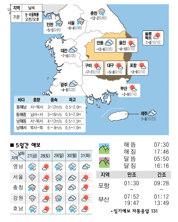 날씨-1월 26일(목) "낮부터 추위 풀려"