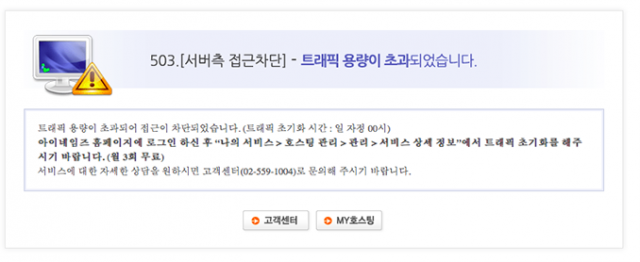 11일 오후 4시 25분 현재 '커피스미스' 홈페이지에서는 "서버측 접근 차단. 트래픽 용량이 초과되어 접근이 차단되었습니다"는 안내 메시지만 확인할 수 있다.