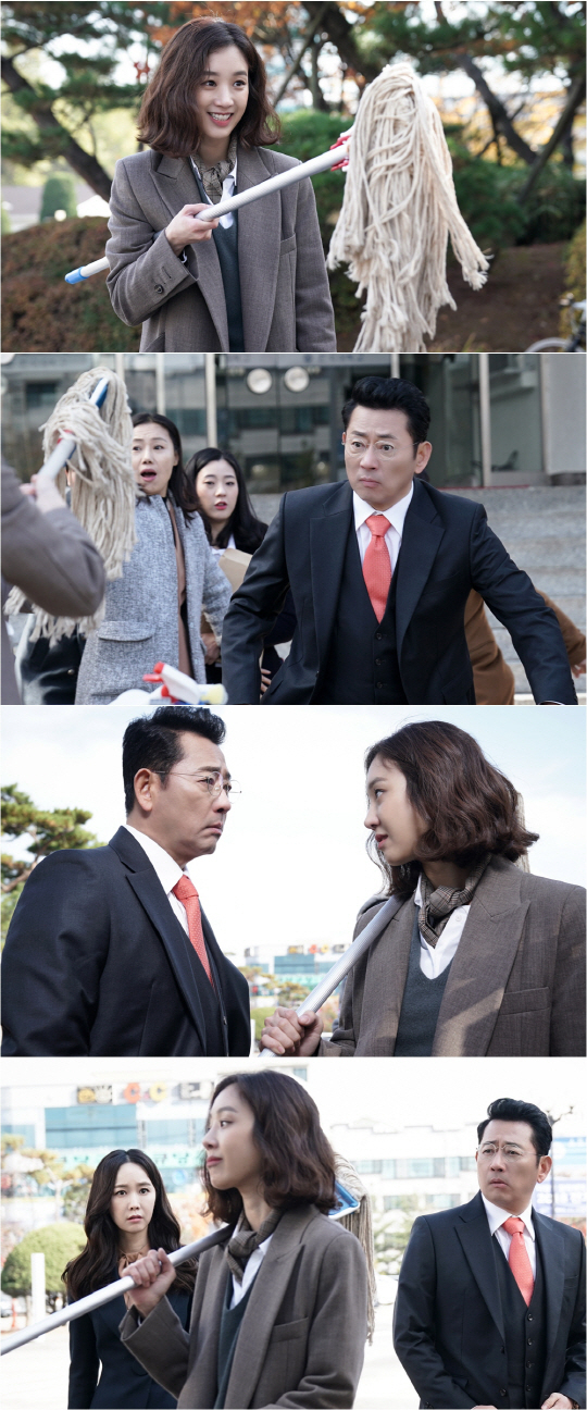 KBS 2TV 월화 드라마 '마녀의 법정'(극본 정도윤 / 연출 김영균 / 제작 아이윌미디어) 측은 14일 마이듬(정려원 분)이 조갑수(전광렬 분)에게 대걸레 테러를 시도하는 모습이 담긴 스틸을 공개했다.