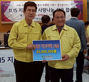 이날 이강덕 시장에게 전달된 성금은 김영만 군수가 개인적으로 맡긴 500만원과 신순식 부군수, 군위군청 공무원이 1천67만원을 더하는 등 각계각층에서 십시일반으로 마련했다.