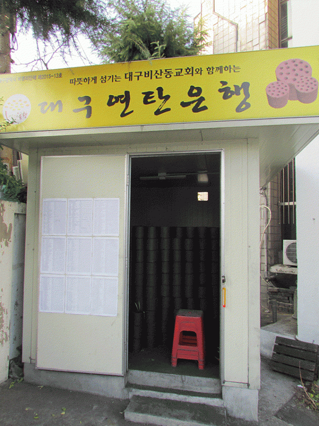 대구연탄은행이 연탄 배달을 한 지는 벌써 11년째다. 밥상공동체 연탄 무료 나눔 사업의 하나로 시작했다. 2006년 개장해 첫해 60가구에 1만2천 장 연탄을 나눈 이래 11년간 총 100만 장의 연탄을 나눴다. 올해 대구연탄은행은 10월 27일 개장식을 가졌으며 내년 4월 초까지 연탄 나눔을 한다. 연탄은 570가구에 총 20만 장(1억2천만원)을 나눌 계획이다. 한 가구에 연탄 300장을 배달하고 두 번 연탄을 제공하는 가구도 150가정이다. 대구 전역과 군위, 영천에도 배달 서비스를 한다. 연탄 기증도 답지하고 있다. 개장 보름 만에 150가구 분량인 연탄 4만5천 장을 확보했다. 기증자는 희성전자를 비롯한 기업체가 70%를 차지하고 있다. 개인 기증자는 60여 명에 이르고 교회 신자가 상당수 차지하고 있다. 연탄 배달은 토'일요일은 주로 신자들이 봉사하고 평일에는 사회단체나 기업체에서 하고 있다. 대구연탄은행은 소외계층을 대상으로 연탄보일러 수리, 교체도 해주고 있다. 2009년부터 시작해 2015년 10가구, 올해는 20가구에 대해 보일러 수리'교체를 할 예정이다. 박노택 대표는 "해마다 연탄 기증을 해주는 분이 많아 어려운 이웃의 아궁이가 훈훈해졌다"며 "올해도 서로 작은 마음을 보탠다면 연탄 20만 장을 나눌 수 있을 것"이라고 했다.