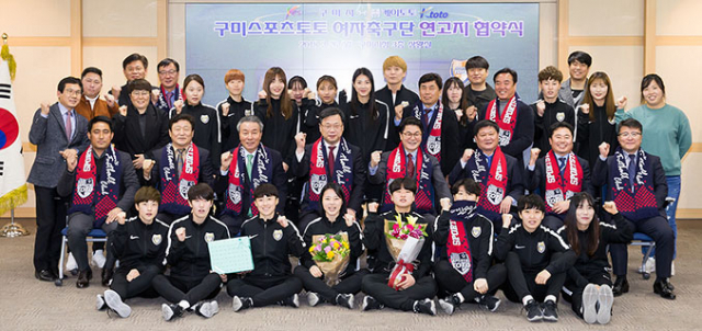 구미시(시장 권한대행 이묵)와 ㈜케이토토(대표 손준철)는 26일 스포츠토토 여자축구단의 연고지 협약식을 했다.