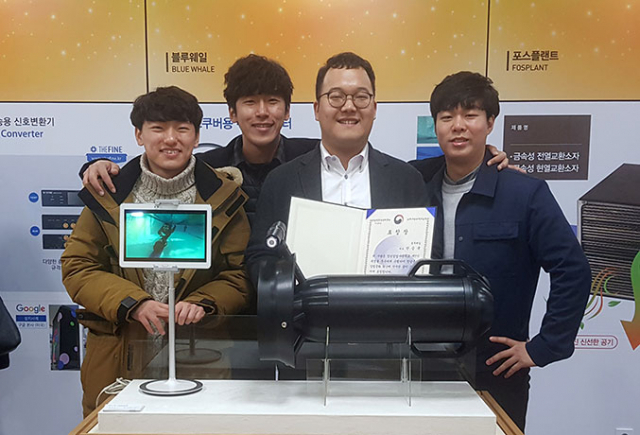 금오공대(총장 이상철) 기계공학과 3학년에 재학 중인 한승욱(왼쪽 세 번째) 씨가 5일 제7기 청년창업사관학교 졸업식에서 청년층 창업문화 확산에 기여한 공로로 중소벤처기업부장관상을 받았다.