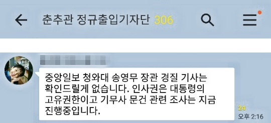 1일 청와대 고위 관계자는 기자들에게 보낸 문자메시지에서 청와대가 송 장관의 경질로 가닥을 잡았다는 일부 보도에 대해 "인사권은 대통령의 고유권한"이라며 "국군기무사령부 문건 관련 조사는 지금 진행 중"이라고 밝혔다. 앞서 한 언론은 '계엄령 문건'과 관련해 기무사가 송 장관에게 하극상에 가까운 모습을 보인 이후, 청와대가 송 장관 교체를 고려하고 있다고 보도했다. 내달 기무사 개혁안이 마련되면 송 장관 역할을 정리하는, 이른바 명예로운 퇴진이 거론되고 있다고 전했다.
