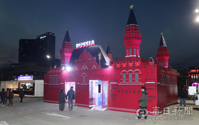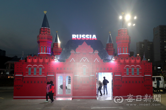 '제1차 한-러 지방협력포럼' 개막을 하루 앞둔 6일 포항 영일대해수욕장 광장에 러시아 국립역사박물관 모형의 러시아 홍보관이 설치돼 있다.