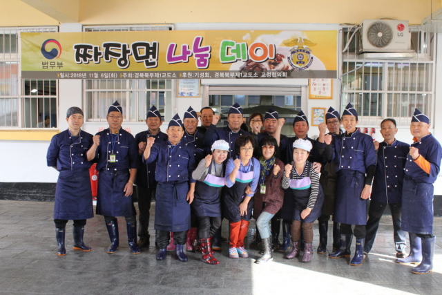 경북북부제1교도소(소장 정병헌)는 6일 경북북부제1교도소 교정협의회(회장 성엄제)의 후원과 포항지역 자원봉사단체인 기성회(회장 김창용)의 재능기부로 수용자 1천400명을 대상으로 짜장면 나눔 봉사를 펼쳤다.