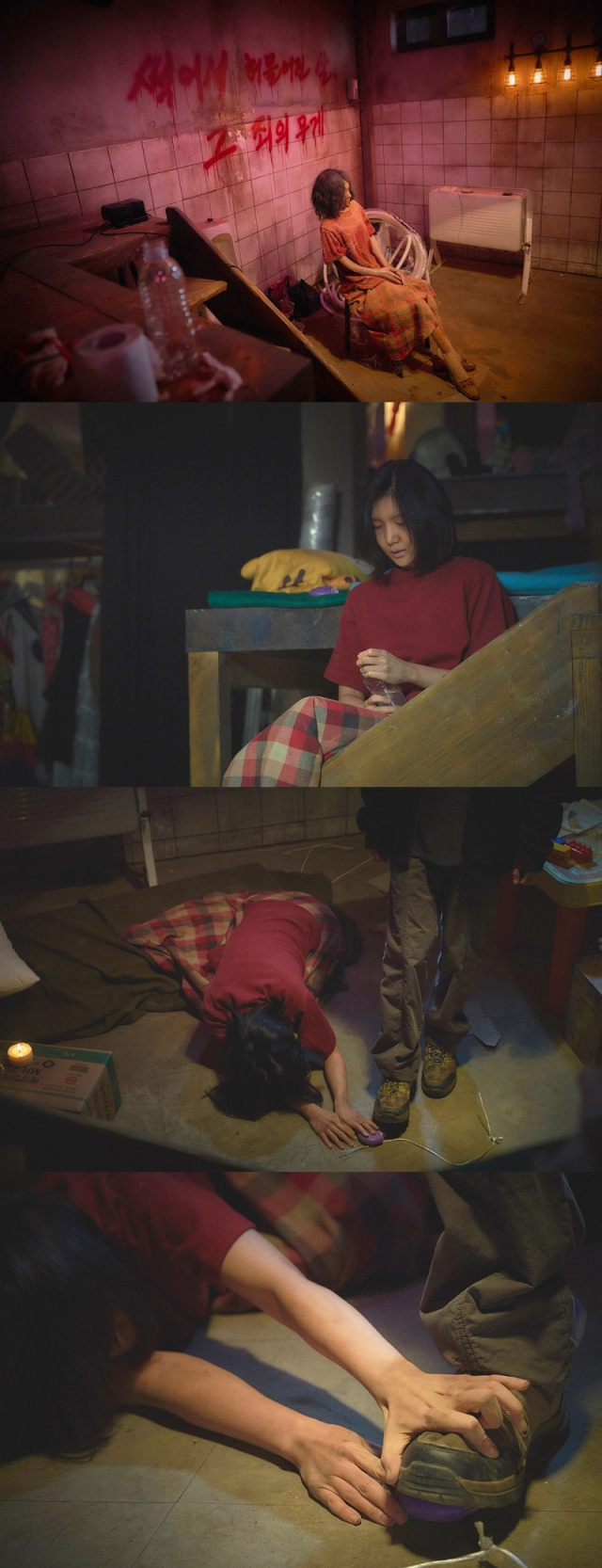 이런 가운데 12월 5일 '붉은 달 푸른 해' 제작진이 의미심장한 장면을 스포했다. 한울센터 후미진 창고 안, 미라가 되기 전 여성이 살아 있을 당시 모습을 공개한 것이다. 다음 사진에서는 그녀가 왜 죽음에 이르렀는지 이유까지 드러나 있다. 바닥에 떨어진 보라색 물건을 잡기 위해 매달리는 그녀의 손, 아랑곳 하지 않고 보라색 물건을 발로 밟아버린 커다란 운동화까지. 보라색 물건은 앞서 형사 전수영(남규리 분)이 사건 현장에서 발견한 '휴대용 호흡기'다.