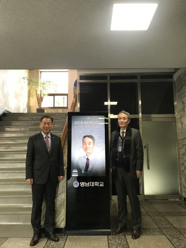 한편 김 교수는 1980년 영남대 교수로 부임해 39년 동안 교육과 연구활동에 매진했으며, 학생처장·생활과학대학장·스포츠과학대학원장 등을 역임했다. 더불어 스포츠사회철학회장, 2003 대구U대회 학술대회 집행위원장, 한국체육철학회장, 경북체육회 이사 등 대한민국과 지역의 체육발전을 위해서도 왕성한 활동을 했다.