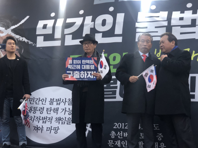 이날 오후 대구 국채보상로 일대에는 대한애국당 당원 등 3천여명이 집결했다. 집회 참가자들은 "문재인 정권의 민간인 불법사찰을 규탄한다. 죄 없는 박근혜를 구출하자"고 외쳤다.
