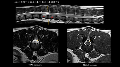 봉이는 MRI검사 결과 척수에 염증이 발생하여 주변 신경이 손상되는 척수염이었다. 척수에 발생하는 염증이 광범위해질 경우 생명을 잃을 수 도 있는 매우 심각한 상황이었지만, 봉이는 다행히 국소적인 척수 손상에 의해 하반신 마비가 발생한 상황이었다.