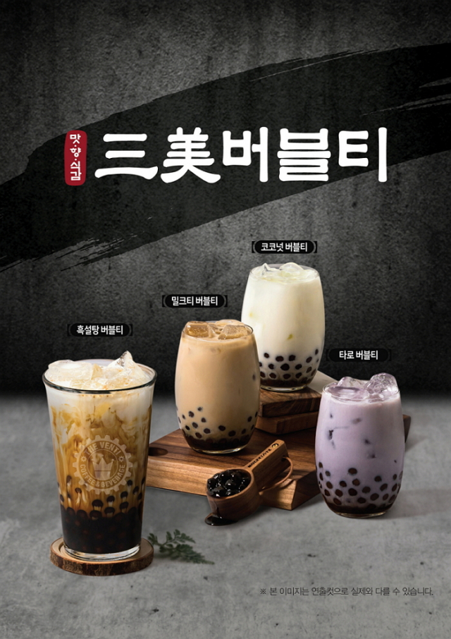 이번에 출시한 삼미 버블티는 흑설탕 버블티, 타로 버블티, 밀크티 버블티, 코코넛 버블티 4종이다. 원재료의 풍부한 맛과 쫄깃한 타피오카의 조화로 입 안에서 맛과 향, 식감까지 세가지 즐거움을 느낄 수 있다는 점에서 삼미(三美) 버블티라고 이름 붙였다.