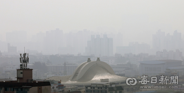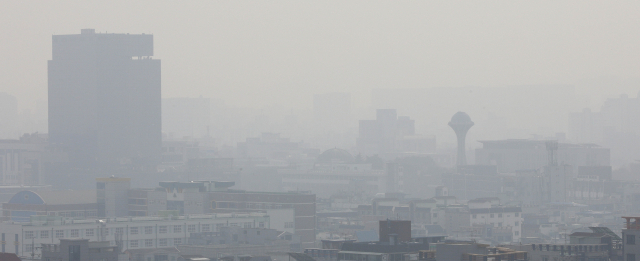 5일 대구 침산공원에서 바라본 대구 도심이 미세먼지로 인해 잿빛으로 보이고 있다. 김영진 기자 kyjmaeil@imaeil.com