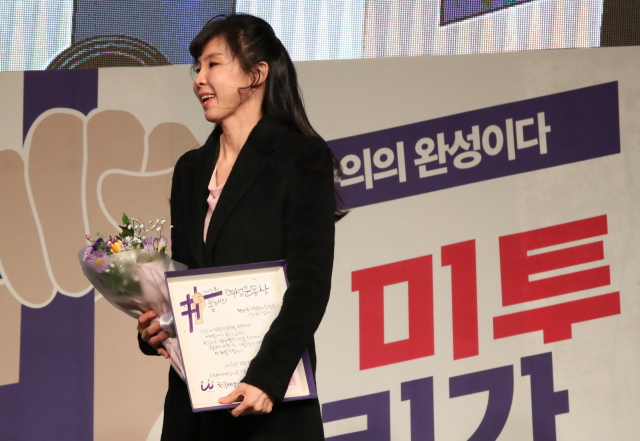 서지현 검사가 8일 오후 서울 광화문광장에서 열린 제35회 한국여성대회 기념식에서 올해의 여성운동상을 수상했다.