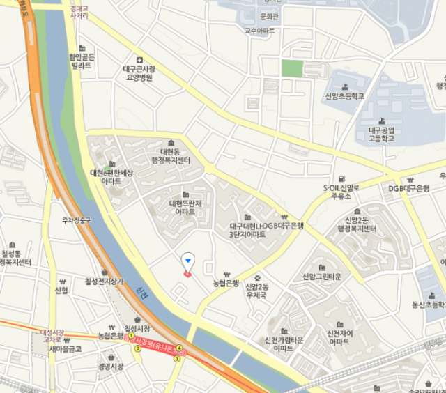 대구 북구 대현 뜨란채 아파트 바로 남쪽에 있다. 경북대학교에서 갈 경우 정문으로 나와 남쪽으로 향해야 한다.