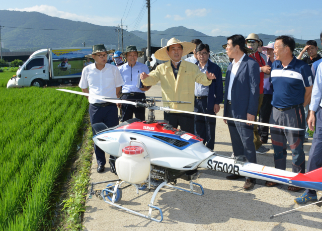 벼 병해충 피해 최소화와 농촌 노동력 부족을 해소하기 위해 벼 재배지역 2천703㏊, 5천700여 농가를 대상으로 무인헬기를 이용한 항공방제사업을 추진한다.