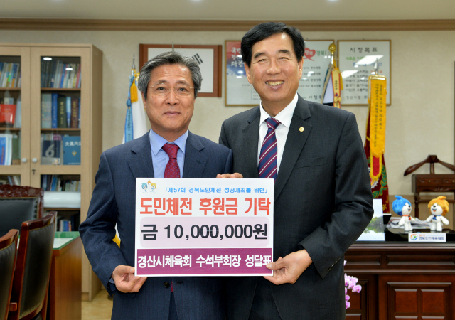 경산시체육회 성달표 수석부회장은 13일 경산시청을 방문해 제57회 경북도민체육대회 성공개최를 위해 경산시체육회에 후원금 1천만 원을 기탁했다.