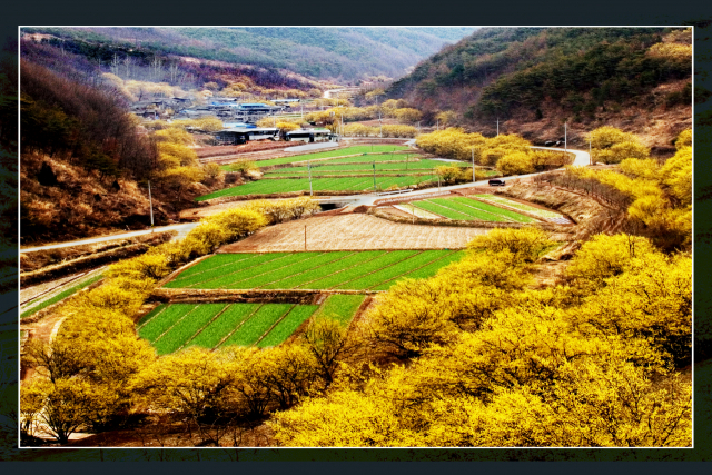 의성군 사곡면 화전리 일대에 노란 산수유꽃이 활짝 펴 봄 상춘객들을 유혹하고 있다.