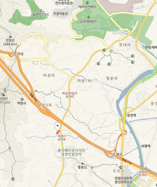유림1교차로를 찾아가면 된다. 이곳은 영동고속도로 용인IC 바로 서쪽에 있다. 에버랜드 및 캐리비안베이 남쪽이다.