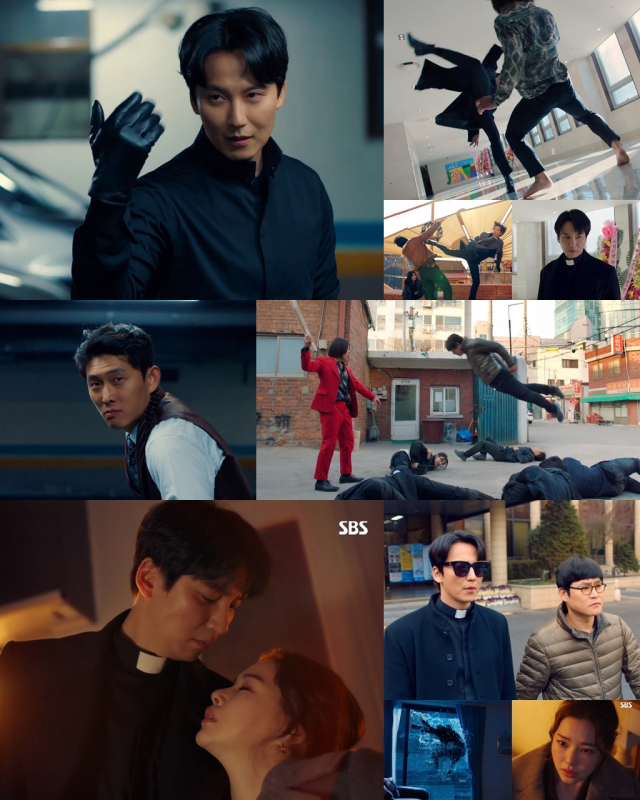 악당들을 발차기 한 방으로 응징하는 사제 김해일(김남길 분)의 엔딩은 그 어느 때보다 통쾌한 카타르시스를 선사했다. 이영준(정동환 분) 신부의 장례식 후 각성한 김해일이 장룡(음문석 분)을 향해 날린 돌려차기가 6회 엔딩을, 증인들을 빼돌린 러시아 갱스터들을 제압하는 김해일의 날라차기가 10회 엔딩을 장식하며 시청자들을 환호하게 했다.