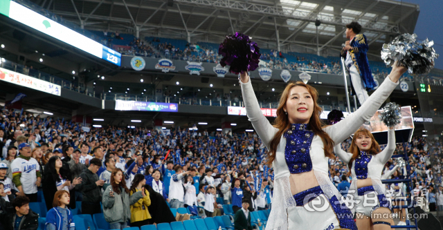2019프로야구 삼성라이온즈 홈 개막경기가 열린 29일 대구삼성라이온즈파크를 찾은 팬들과 치어리더들이 선수들을 응원하고 있다. 우태욱 기자 woo@imaeil.com