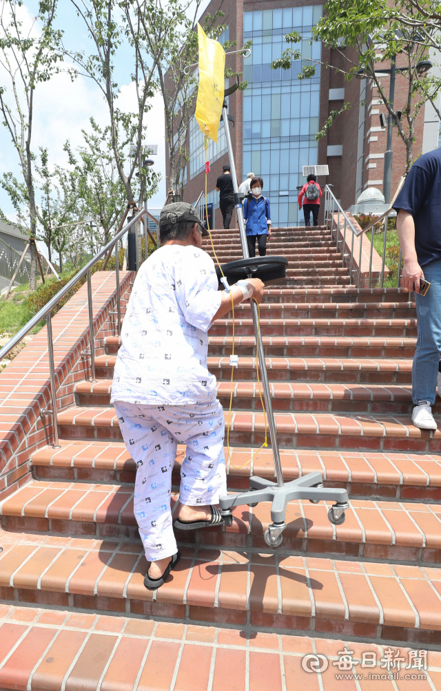 동산병원에서 신장치료 중이라는 A(52) 씨는 "이번이 세 번째 병원 방문인데, 몸도 편치 않은 상태에서 계단을 오르내리기가 쉽지않다"며 땀을 훔쳤다.